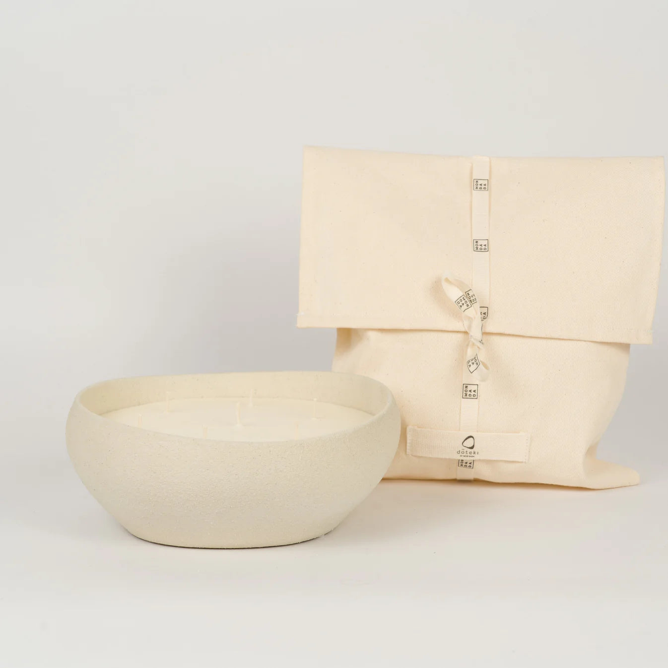 Die Doteki-Kerzen sind sorgfältig in einem Leinenumschlag in einer luxuriösen Geschenkbox verpackt, die eine raffinierte Präsentation mit zurückhaltender Eleganz verbindet.