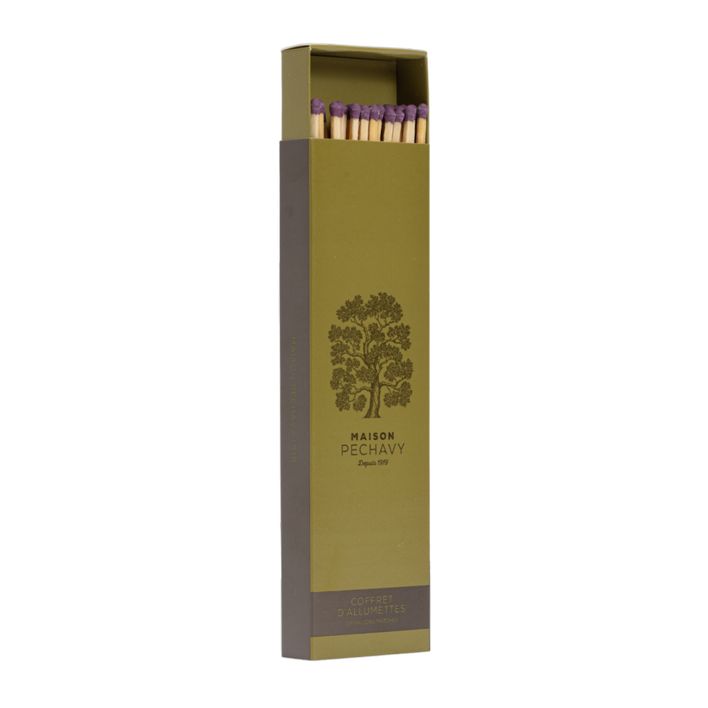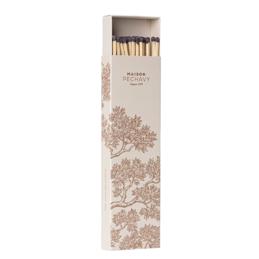Das Set wird durch farblich passende lange Streichhölzer aus unbehandeltem Pappelholz ergänzt – ideal zum Anzünden von dünnen Kerzen, Kaminen oder Duftkerzen. Sie sind nicht nur praktisch, sondern auch ein dekoratives Detail in jedem Interieur.