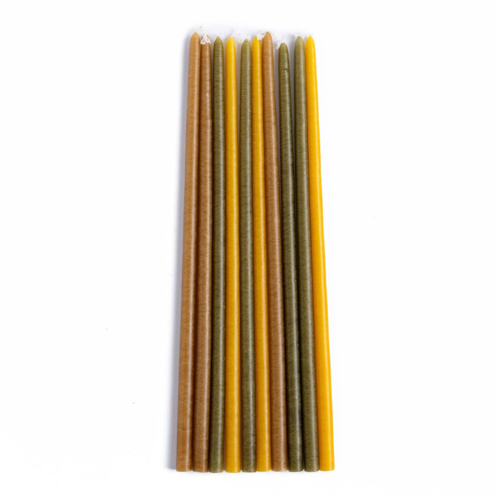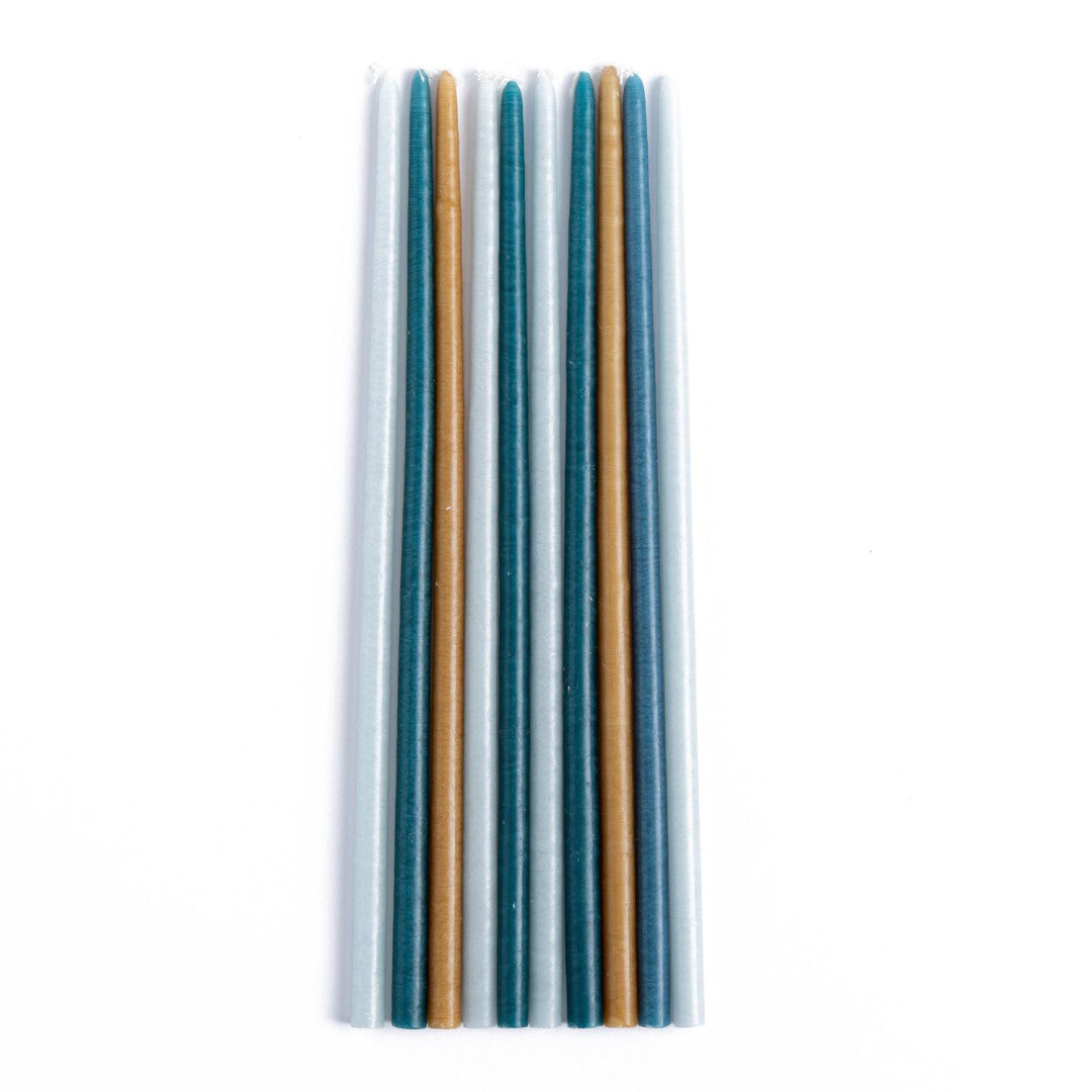 Diese schlanken, eleganten Kerzen werden nach der traditionellen Tauchmethode gefertigt. Dabei formen Handwerker kegelförmige Kerzen mit Baumwolldochten, die wiederholt in farbiges Wachs getaucht werden. So entstehen lebendige, einzigartige Farbtöne.