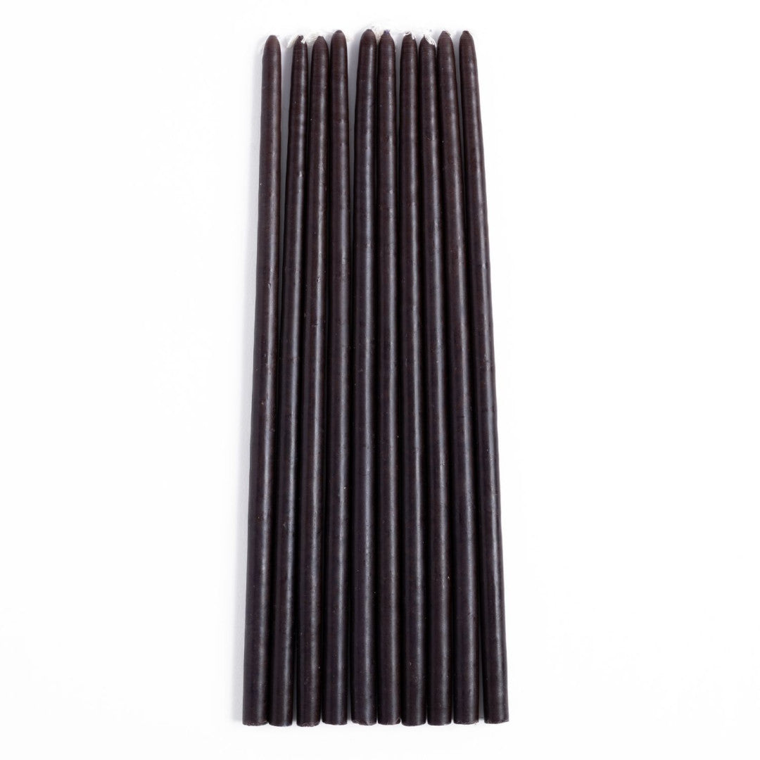 10 handgefertigte Kerzen: Höhe 30 cm. Durchmesser an der Basis 0,8 cm bis 1 cm.