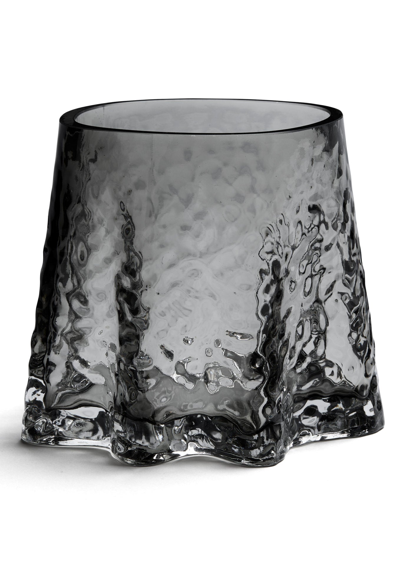 Die Serie Gry ist aus mundgeblasenem Glas hergestellt, was jedes Stück einzigartig macht. Die Kollektion enthält drei Vasen und ein Teelicht, alle in drei verschiedenen Farben.