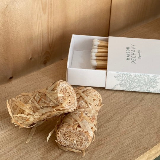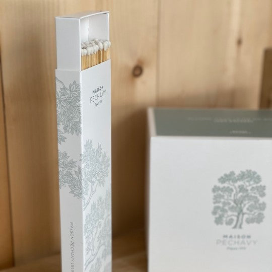 Setzen Sie auf Sicherheit und Stil: Die langen Streichhölzer von MAISON PECHAVY zünden Kamin, Herd, Duftkerzen oder Grill mühelos an.