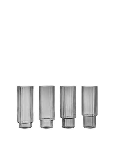 Ripple Long Drink Glasses | 4er Set | Smoked Grey
