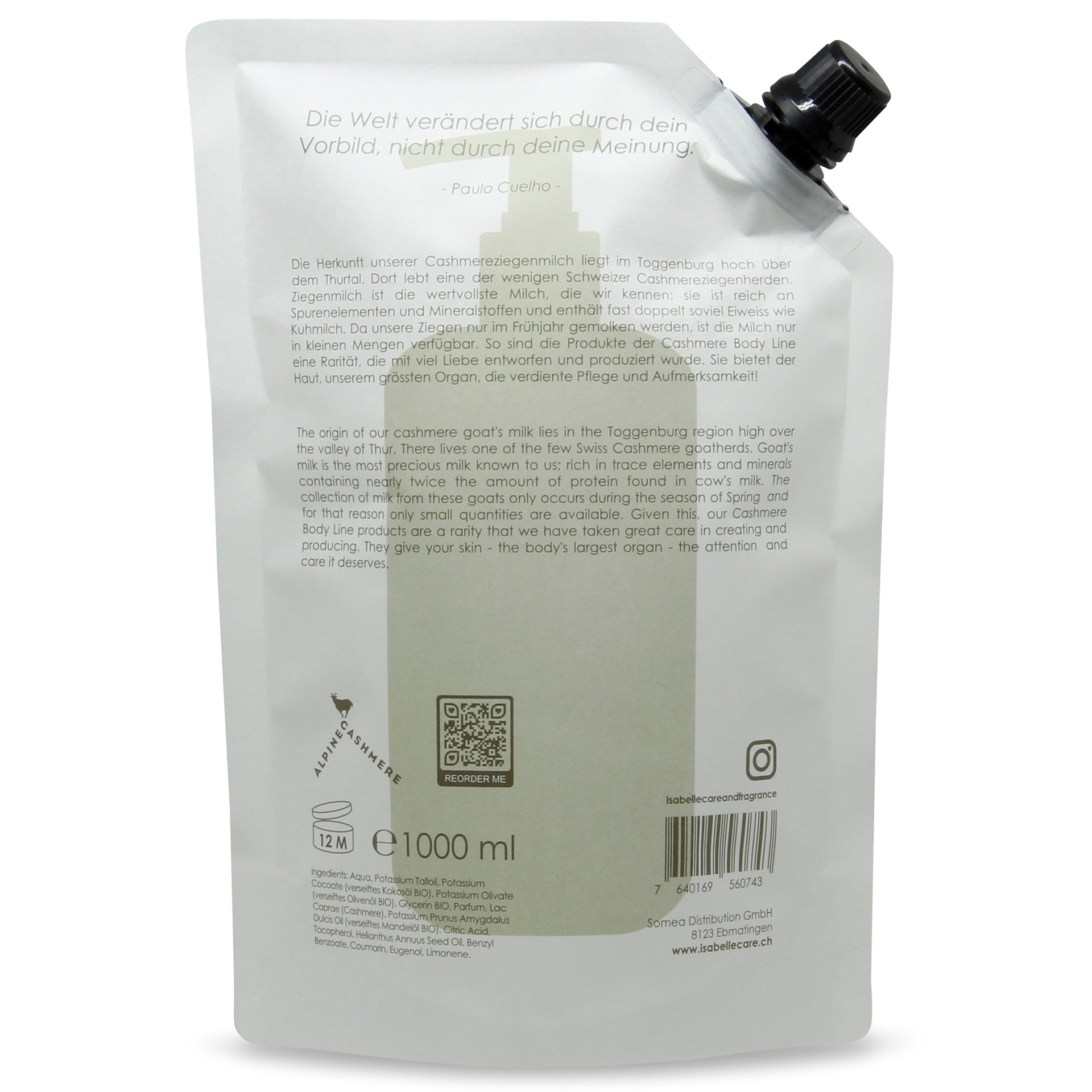 Eine wunderbar pflegende Seife für Hände, Gesicht und Körper mit Kokos-, Mandel- und Olivenöl. Mit dem Nachfüllbeutel sparen sie 85% Kunststoff gegenüber 2 Flaschen à 500ml.