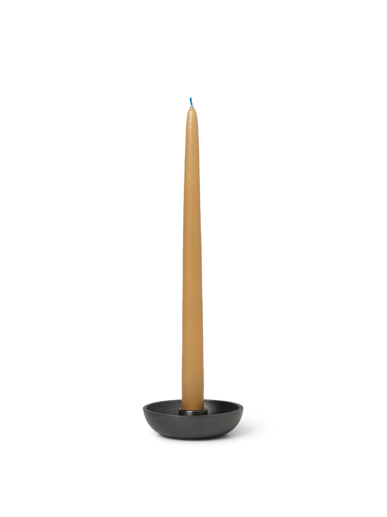 Dieser schlicht und elegant geformte Kerzenständer besteht aus gegossenem Metall, das ihm seine besondere raue und detailreiche Textur verleiht. Verwende ihn als Einzelstück oder in Kombination mit anderen Kerzenständern in unterschiedlichen Höhen, um ein einheitliches, gemütliches Ambiente zu schaffen.
