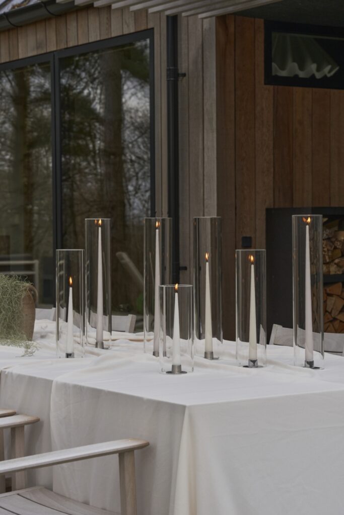 Veredeln Sie Ihre Tischdekoration mit diesen neuen zylindrischen Glaswindlichtern. Diese eleganten Gläser schützen die Flamme vor Wind, sodass Sie Ihre Veranstaltungen im Freien ohne Unterbrechungen geniessen können. Die zylindrischen Glaswindlichter sind in verschiedenen Höhen erhältlich – 35 cm und 45 cm – und sind das perfekte Accessoire für jede Tischdekoration im Innen- und Aussenbereich.