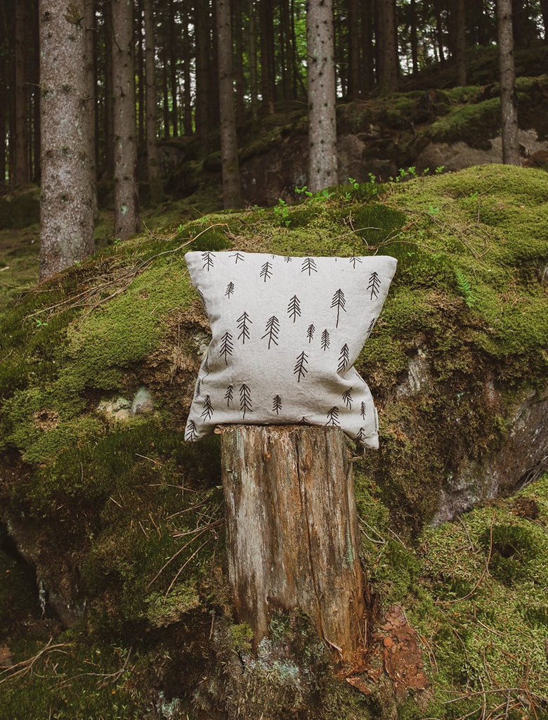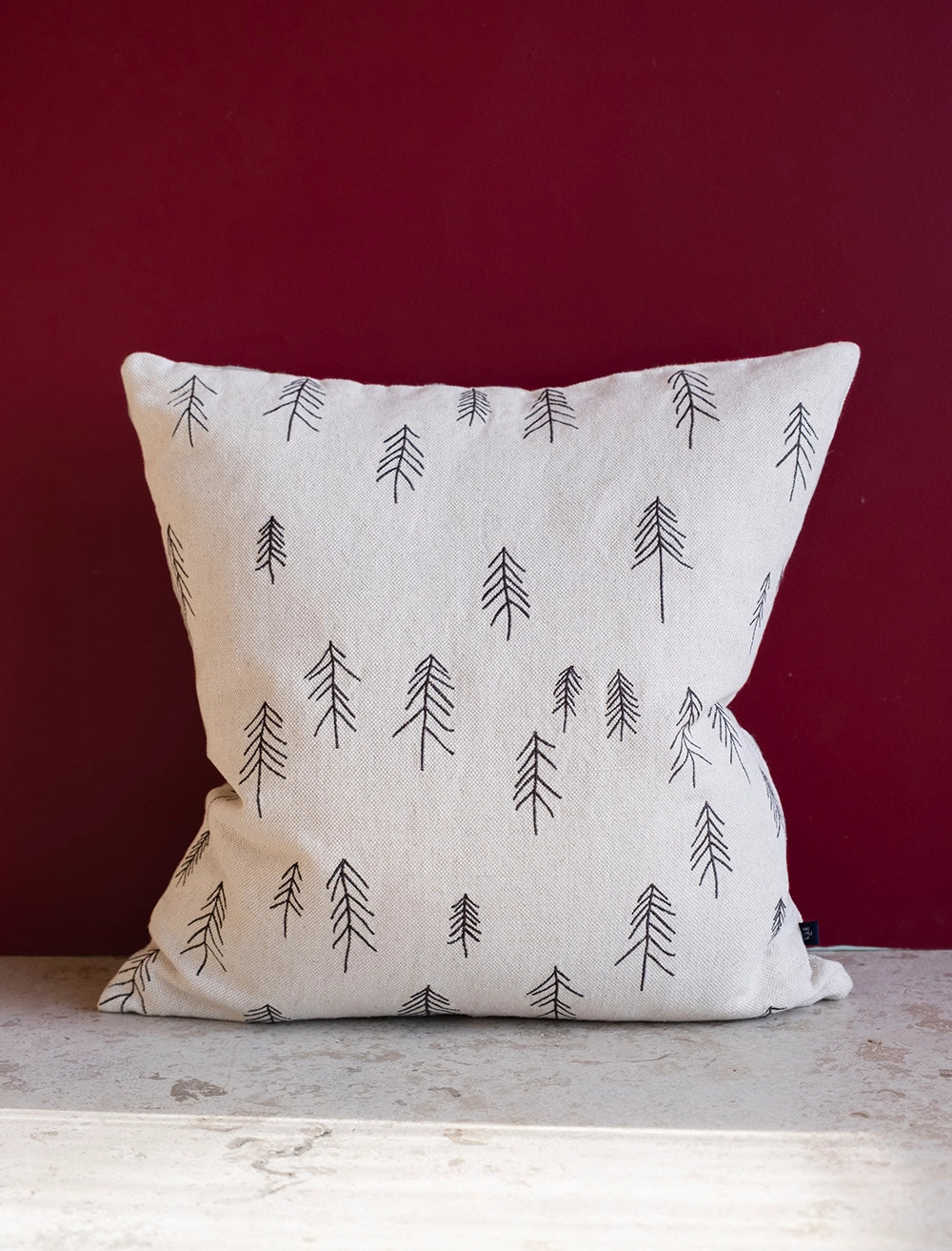 Bringen Sie die Natur ins Haus. Bestickter Kissenbezug mit Fine Little Day-Muster TALL auf schwerem Leinengewebe.
