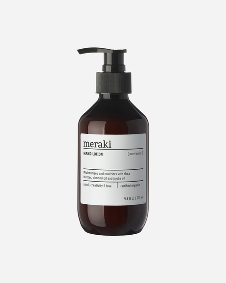 Eine parfümfreie und zertifiziert biologische Handcreme für seidenweiche Hände. Die Pure Basic Handcreme von Meraki enthält schonende und möglichst wenige Inhaltsstoffe, damit die ganze Familie daran Freude hat. Deine Haut wird tiefengepflegt, weich und dank Aloe Vera, Mandelöl, Kokosöl, Sheabutter und Vitamin E genährt. Die Haut an den Händen wird mehrfach täglich warmem Wasser und Handwäsche ausgesetzt und ist dadurch besonders schutzbedürftig. Um den Verlust der Elastizität gegenzuwirken und deine Hände weich zu machen enthält die Handcreme auch Jojobaöl und Glyzerin. Die Handcreme ist von COSMOS organic by Ecocert zertifiziert und trägt ausserdem die Umweltzeichen Nordic Swan Ecolabel und AllergyCertified Label. Hautfreundlich und familienfreundlich - und der cleane Look macht sich zudem richtig gut im Regal.