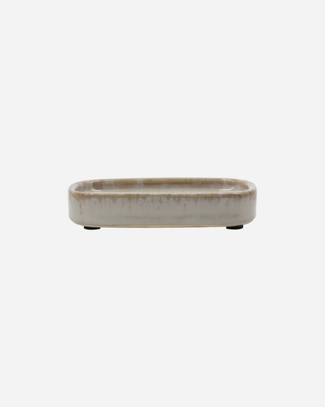 Sorge dafür, dass du rund um dein Waschbecken immer beste Ordnung hast - mit der Seifenschale Datura von Meraki. So kannst du das Waschbecken oder deine Spüle viel leichter reinigen und der gesamte Bereich sieht viel übersichtlicher und ordentlicher aus - egal ob in der Küche oder im Badezimmer. Die Seifenschale aus Steingut mit gräulicher Glasur bringt ein Gefühl der Ruhe und Natürlichkeit in dein Zuhause. Bei der Wohnungsdeko macht eine kleine Veränderung oft richtig viel aus.