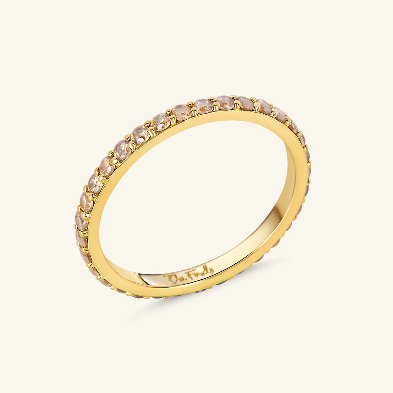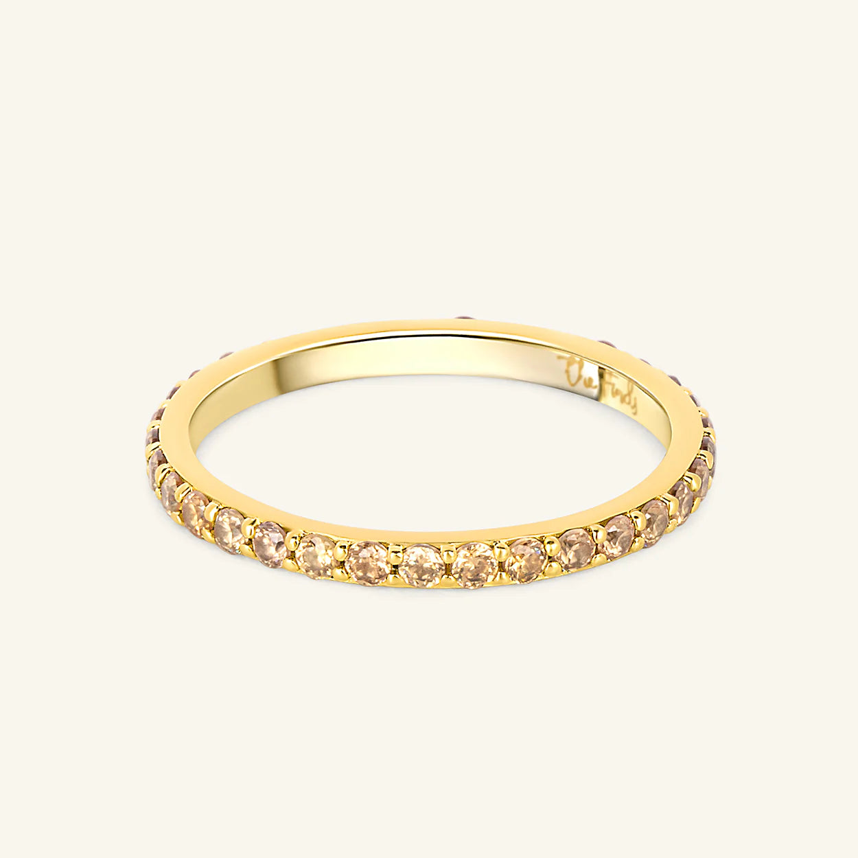 Einfacher Ring, rundum mit champagnerfarbenen Zirkonia (Ø 1,8 mm) besetzt, von Hand gefasst