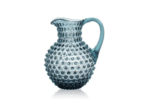 Ob als Vase für Ihre Blumen oder als Wasserkrug, dieser Krug belebt jeden Raum und wird sowohl zu einer tollen Dekoration als auch zu einem schönen, funktionalen Glasstück. Es verfügt über ein ästhetisches Nageldekor, das in der ersten Hälfte des 20. Jahrhunderts von Herrn Fenton populär gemacht wurde. Der elegante, sich verjüngende Griff sorgt für einen bequemen Halt der Kanne, während die handgeformte Eislippe unberechenbare Eiswürfel zurückhält und die raffinierte Öffnung eine einfache Reinigung ermöglicht.