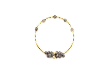 Armband auf Elastikband mit Sterlingsilber vergoldet, Kristalltropfen und Labradorit