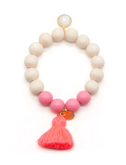Armband auf Elastikband, Sterlingsilber vergoldet, Holzperlen 12mm