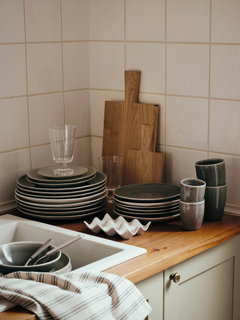 Farbe & Material: Grau, reaktiv glasiertes Steinzeug