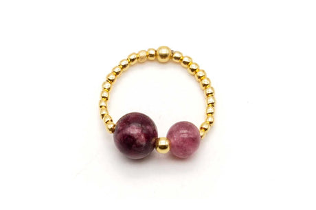 Ring auf Elastikband mit Sterlingsilber vergoldet, Perlen aus Achat und Quarz