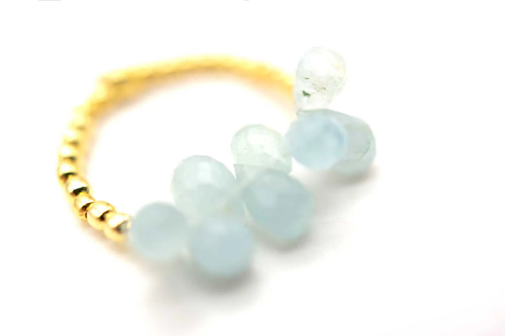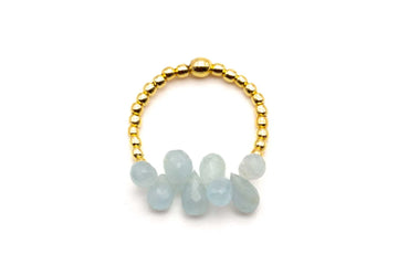 Ring auf Elastikband mit Sterlingsilber vergoldet und Tropfen aus facettiertem Aquamarin