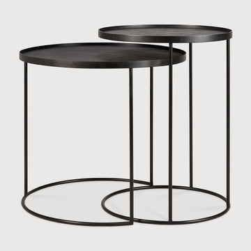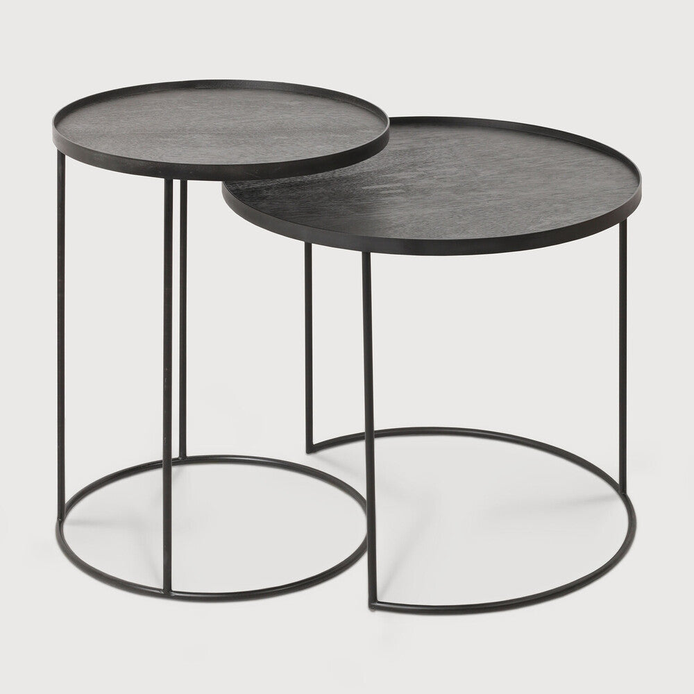 Verkauft als Set mit 2 Tischen. Zu kombinieren mit einem kleinen und einem großen runden Tablett. Tabletts sind separat zu bestellen.
